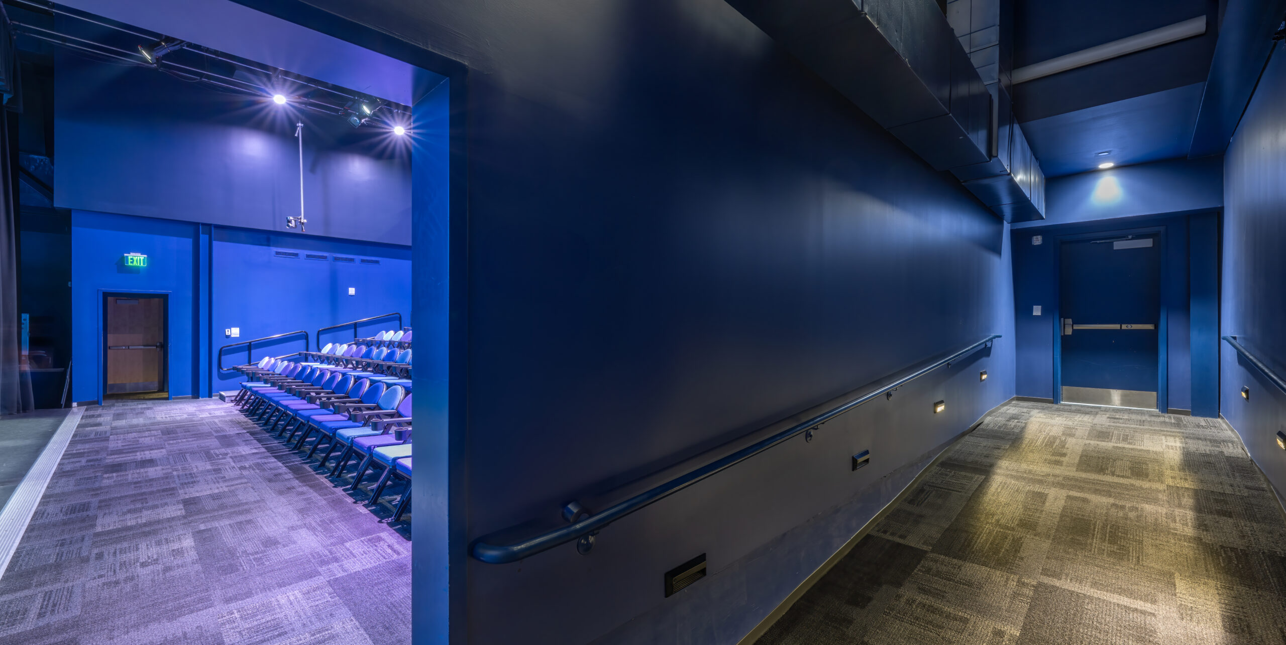 Our state-of-the-art theater stage is 45'x64' (measurements do not include cyclorama), featuring Harlequin sprung floors and stadium seating for up to 138 patrons. Two large dressing rooms, each with a private restroom and shower, are included with weekly rentals.